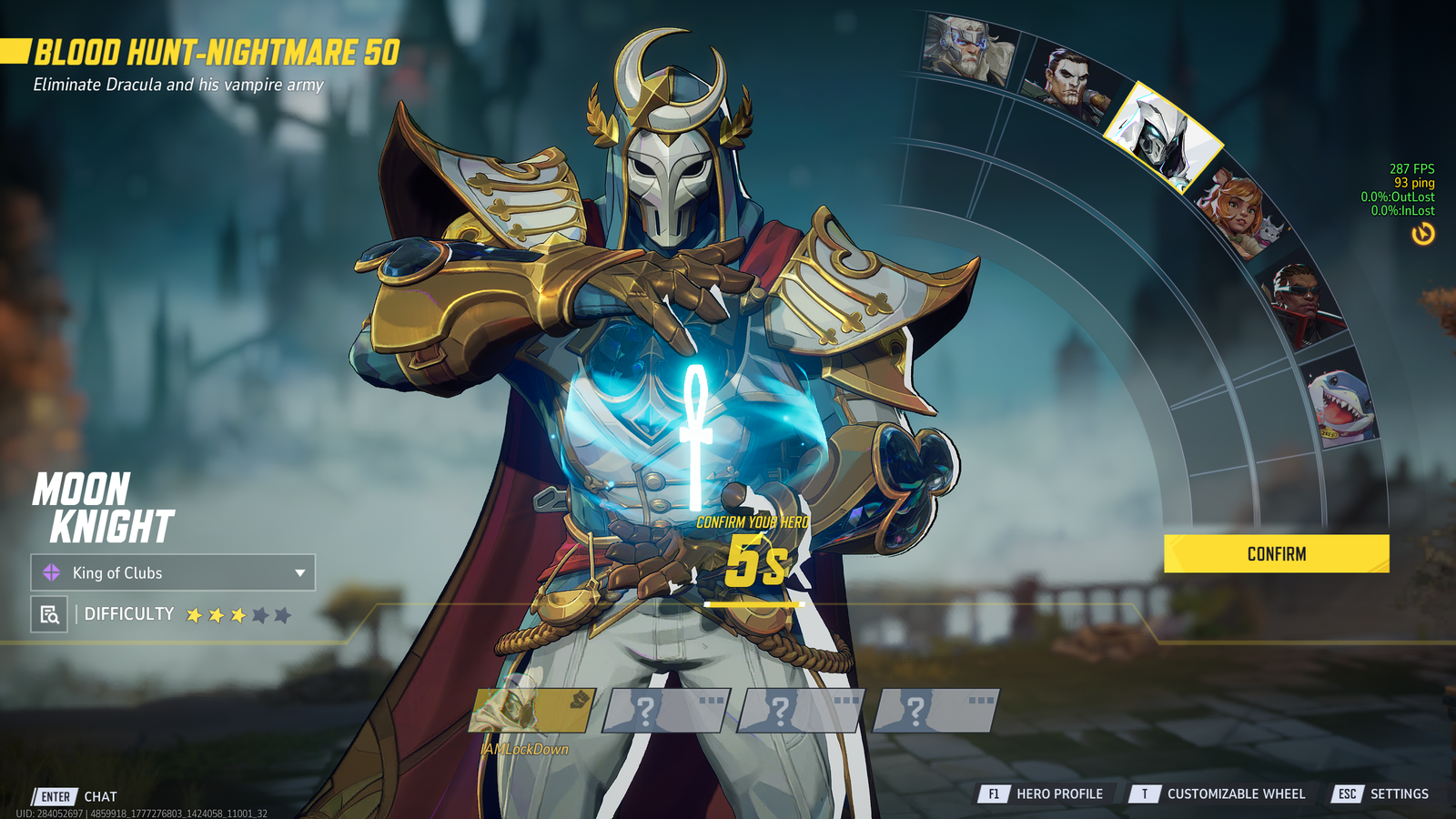 Когда сталкиваетесь с Дракулой, Лунный Рыцарь — самый эффективный герой. Победа над Королём Вампиров требует мощных атак дальнего боя и постоянного движения, и Лунный Рыцарь преуспевает в обоих. Хотя Белка-девочка также сильный боец дальнего боя, Лунный Рыцарь, особенно когда оснащен способностями на основе Анкха, является окончательным выбором.
