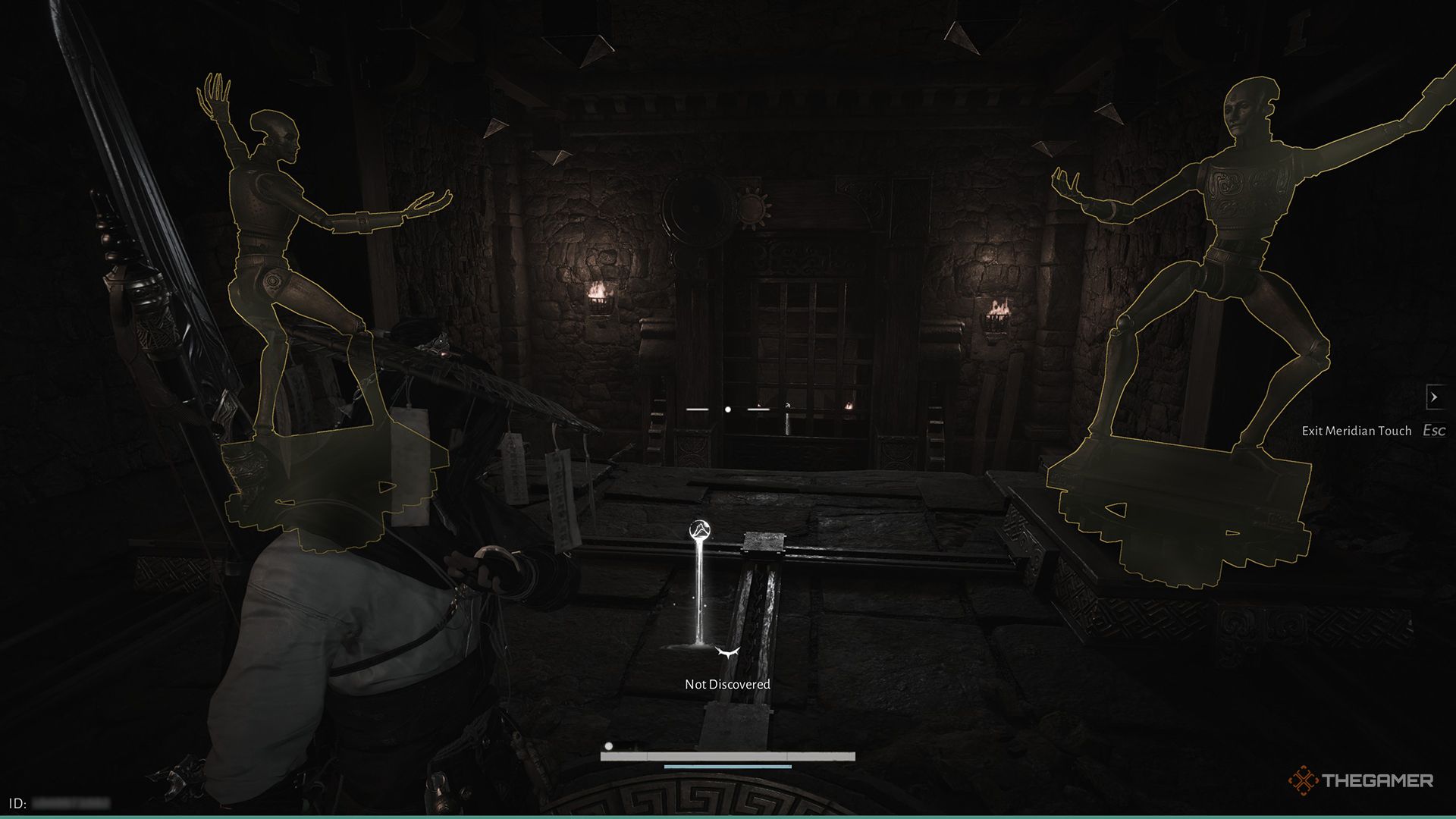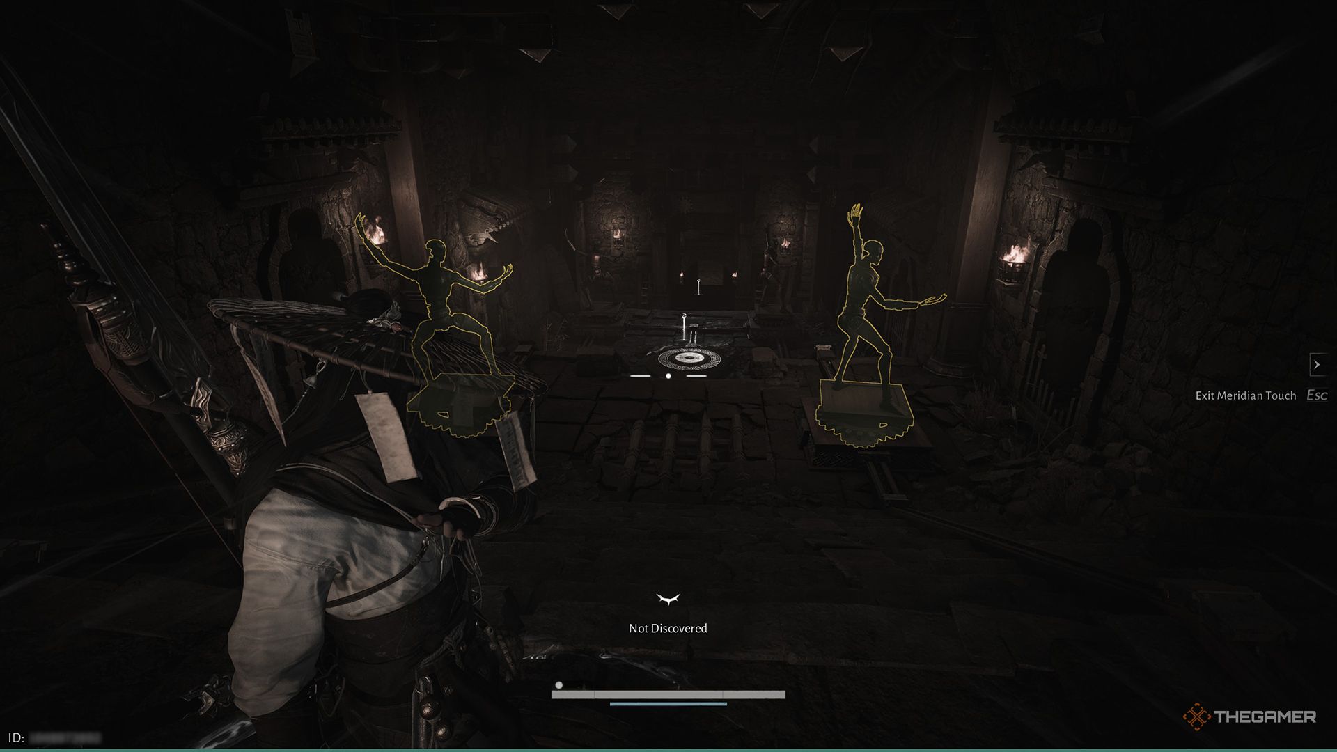 Чтобы открыть дверь, дождитесь, пока обе статуи не будут обращены в одну сторону. Затем используйте Meridian Touch, чтобы заморозить левую статую, что позволит вам продолжить.