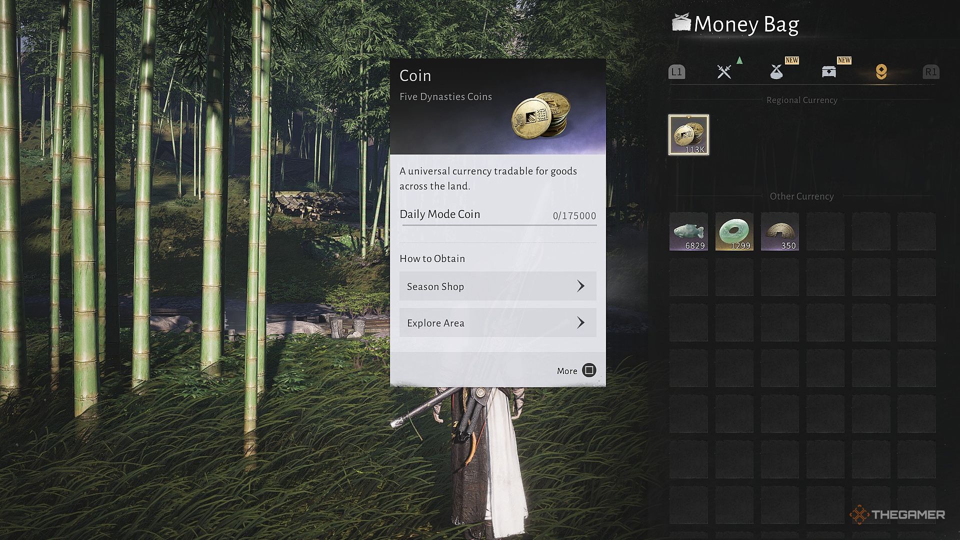 | Монеты Пяти Династий (варианты Чжоу и Сун) | 175 500 (обе вариации) | Покупайте предметы у торговцев в игре. | Получайте через квесты, исследования, открытие сундуков и победу над врагами. |