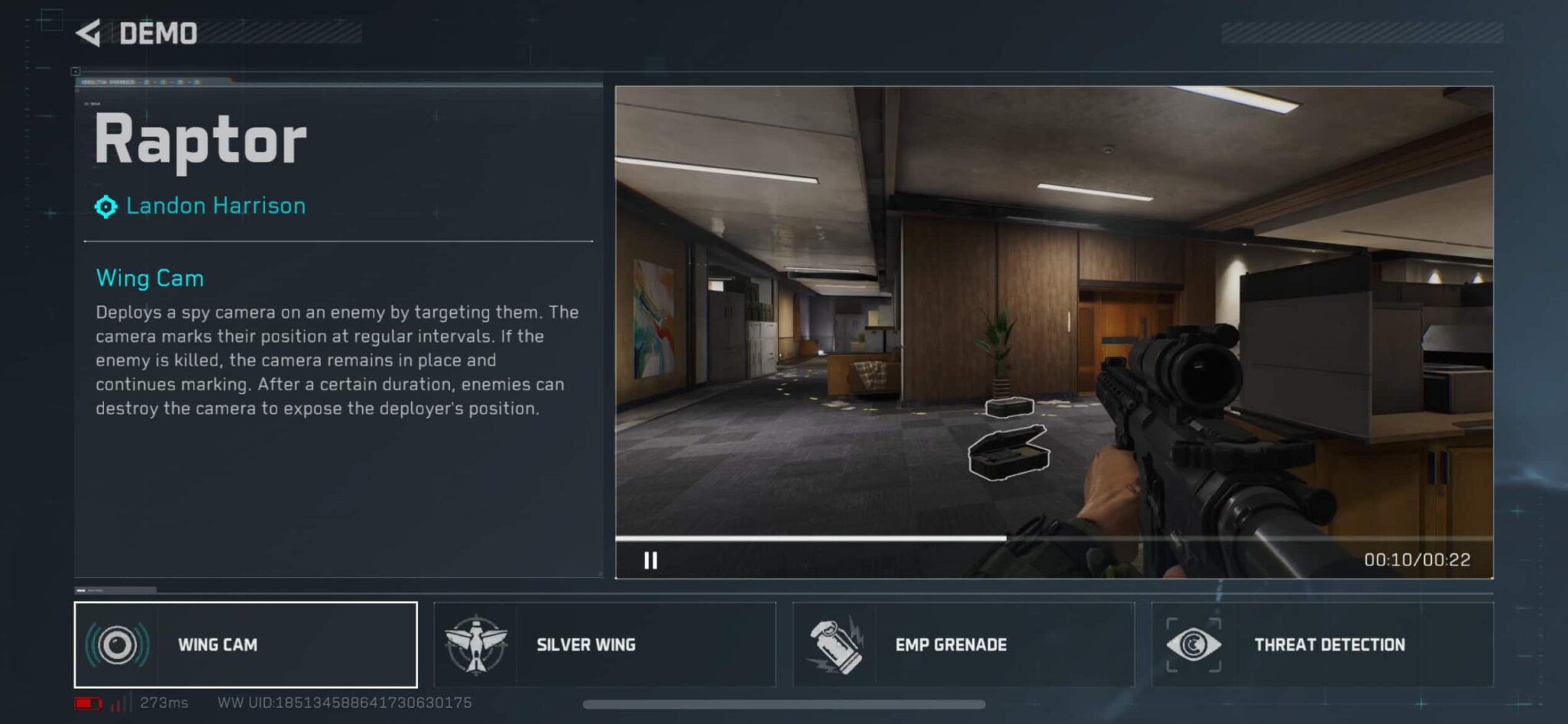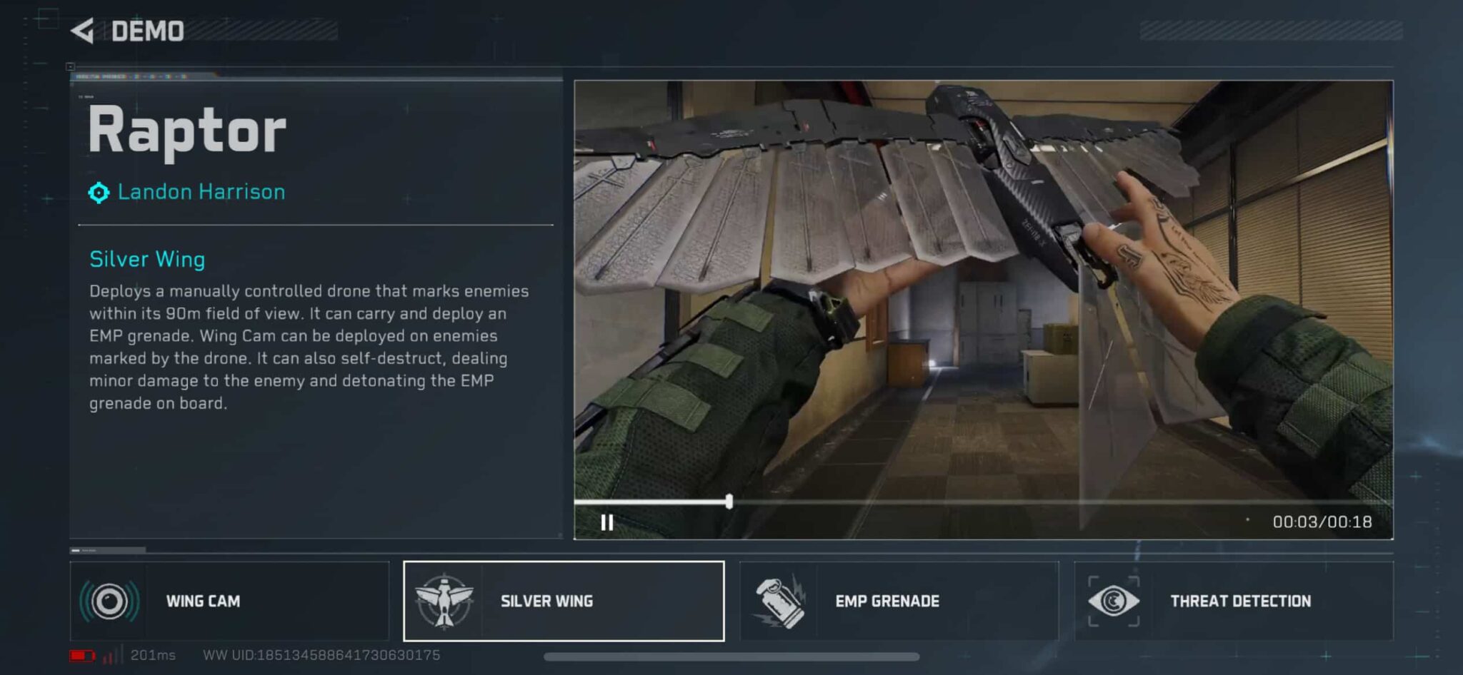В военном деле информация имеет решающее значение, и новый оператор разведки в Delta Force, Raptor, превосходно собирает ее. Вместо того, чтобы бросаться в бой, Raptor сосредотачивается на наблюдении за противником, создании отвлекающих маневров и предотвращении их незаметного перемещения. Он использует дроны, устройства электромагнитного импульса и скрытые камеры для контроля над полем боя, выявляя опасности и выводя из строя команды, полагающиеся на технологии.