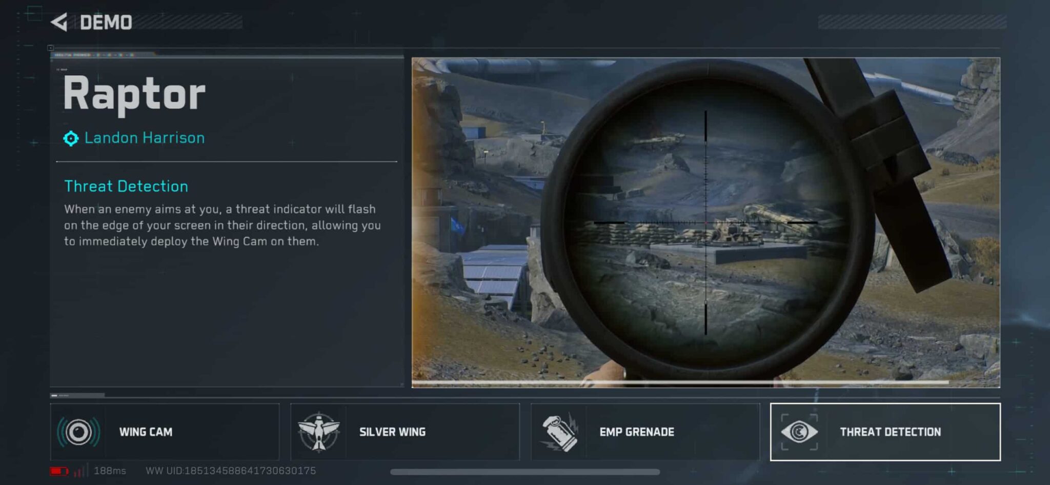 Особые способности Рейптора делают его невероятно опасным. Его система ‘Обнаружение угрозы’ предупреждает вас, когда враг нацеливается на вас, давая вам решающий момент для реакции — будь то контратака, уклонение или использование его ‘Камеры на крыле’, чтобы шпионить за ними. Эти навыки в сочетании делают Рейптора лучшим источником информации в Дельта-форсе.