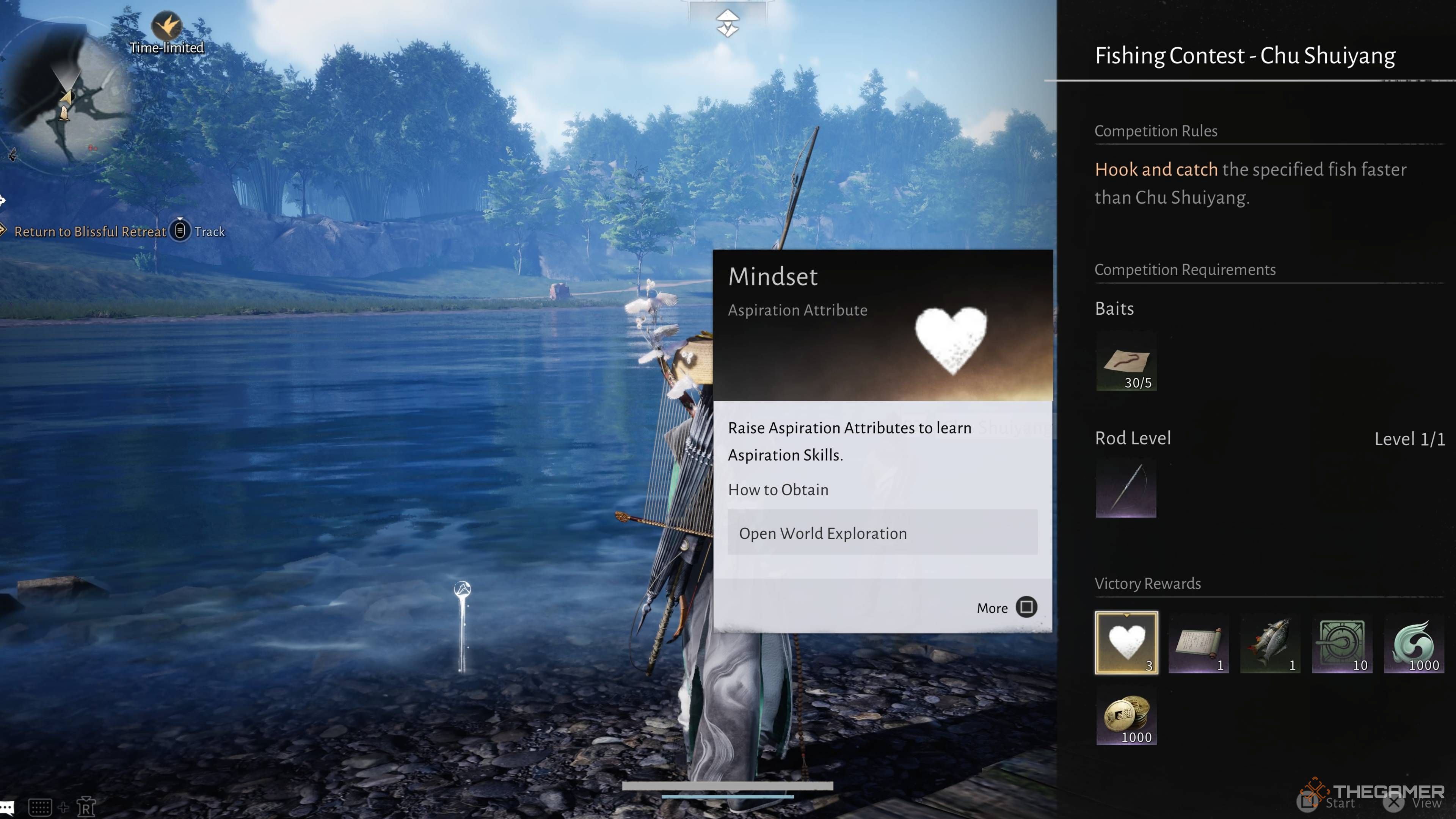 Чтобы начать рыбалку, вам понадобится удочка, которую можно получить у Чу Шуйяна. Он также расскажет вам о рыболовных соревнованиях, которые являются основным способом соревноваться с другими игроками. Вы можете участвовать в этих соревнованиях многократно, но цели и пойманная рыба всегда будут одинаковыми.