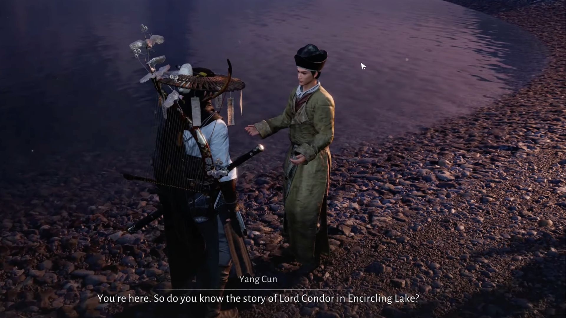 Ян Цун поблизости и не верит истории старейшины Цзяна о лорде Кондоре, подозревая, что это неправда. Поговорите с ним, пока он не предложит вам работать вместе, чтобы опровергнуть эту историю. Если вы согласитесь помочь, начнется квест.